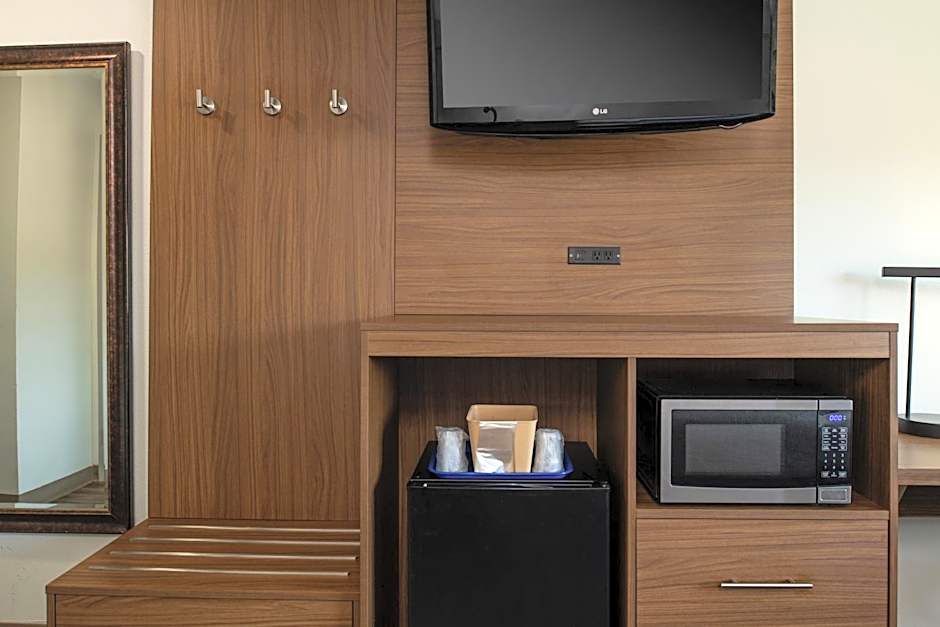 Air conditioned room offers a cable TV, a microwave, a fridge and tea/coffee-making facilities.